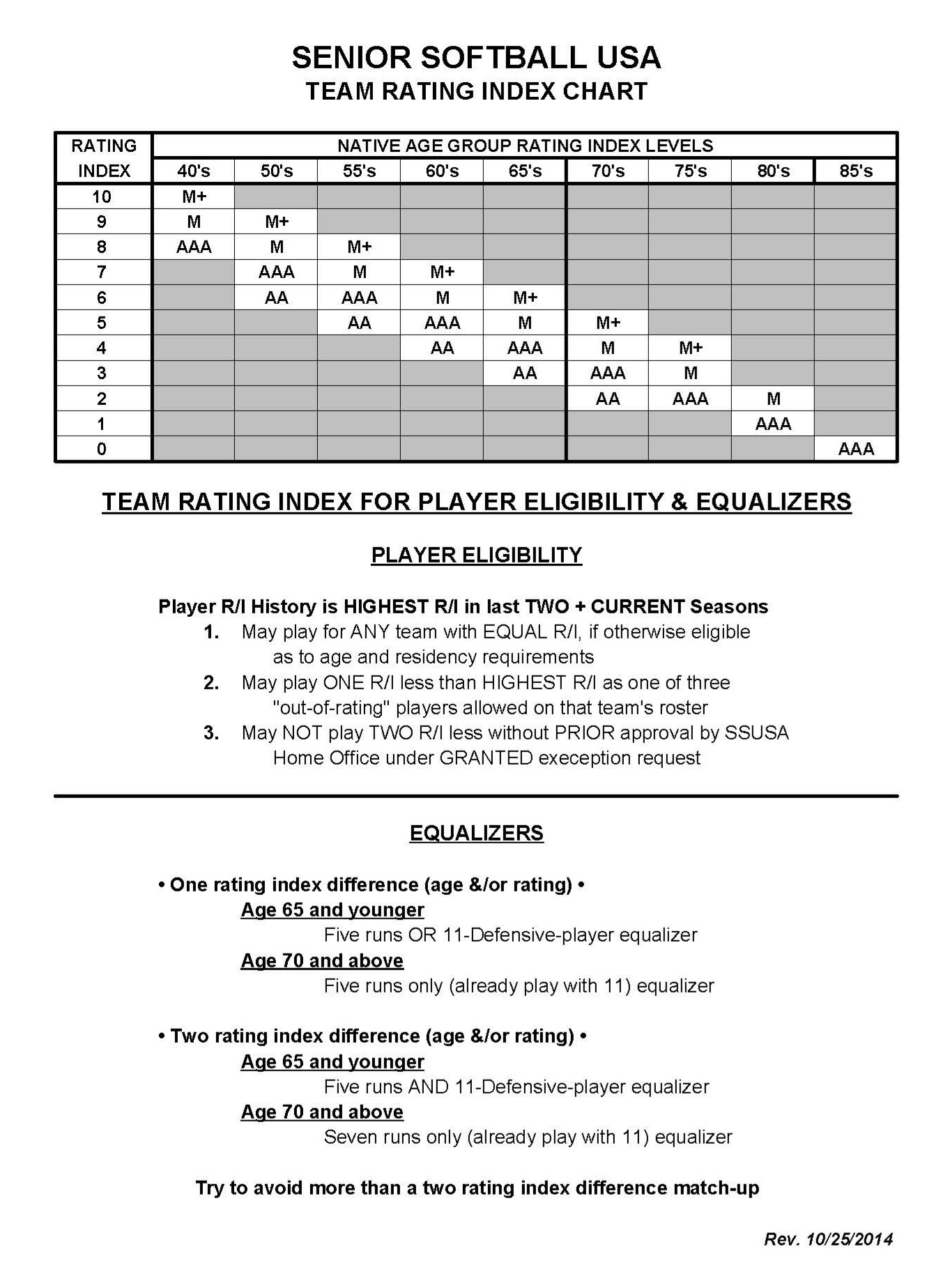 The Ratings Index Chart (below) is not published in the SSUSA Rulebook ... In summary, a player may play